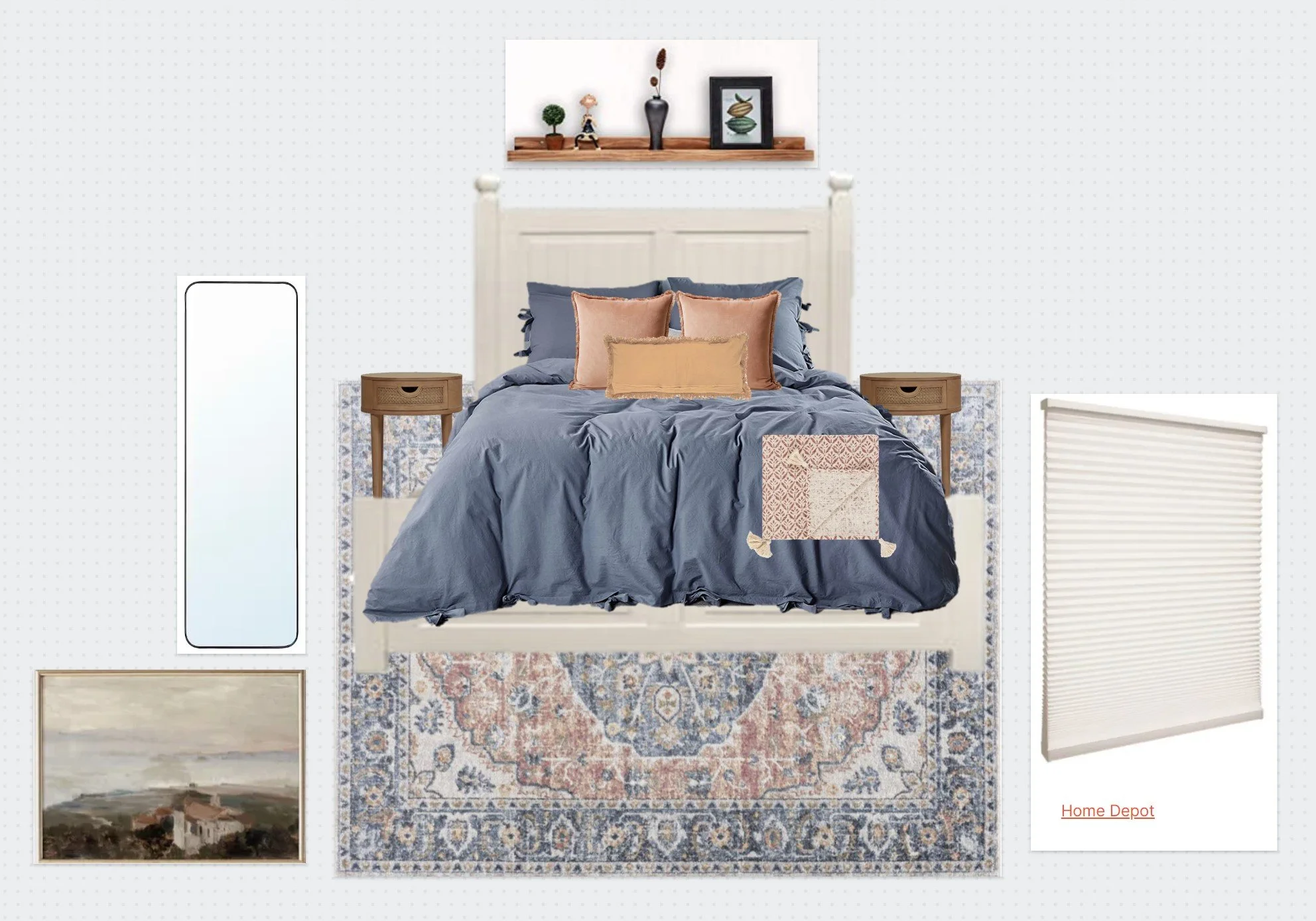 Snapshot of the virtual design board. Use an app like Milanote or PowerPoint to save product links and images as you go!